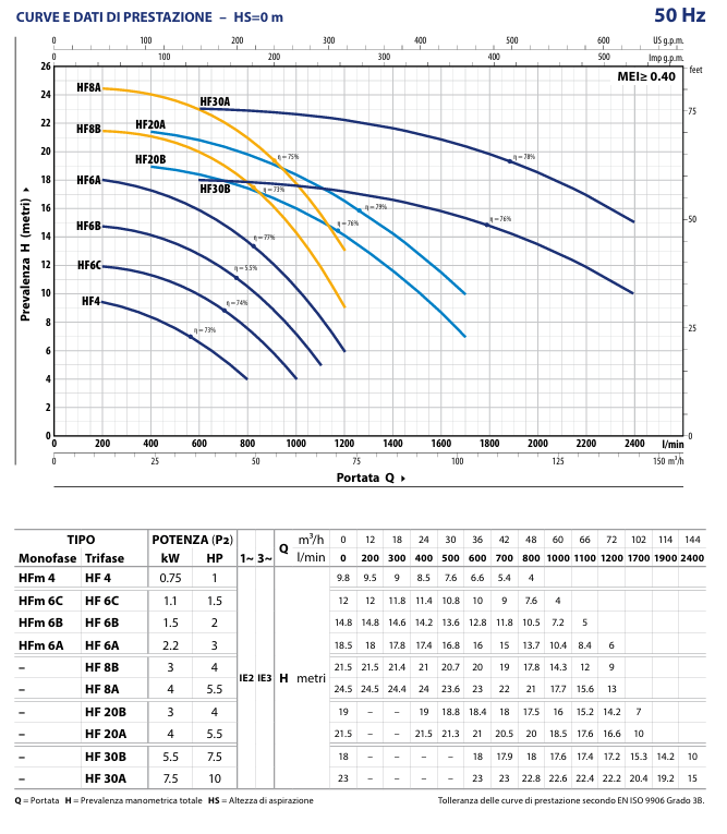 Portata fino a 2400 l/min (144 m3/h)