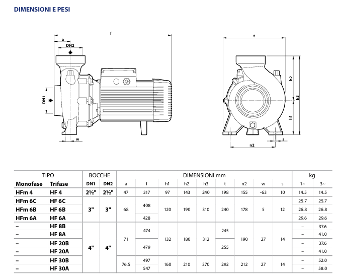 ELETTROPOMPA CENTRIFUGA HFM 6B HP 2 VOLT 220 ALTA PORTATA PEDROLLO