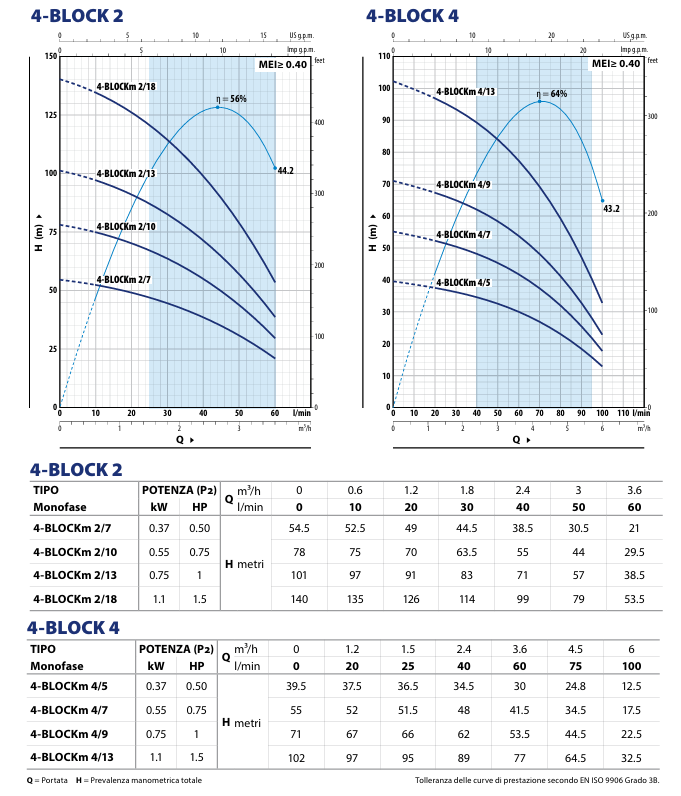 Rendimento al vertice per questo tipo di elettropompe.