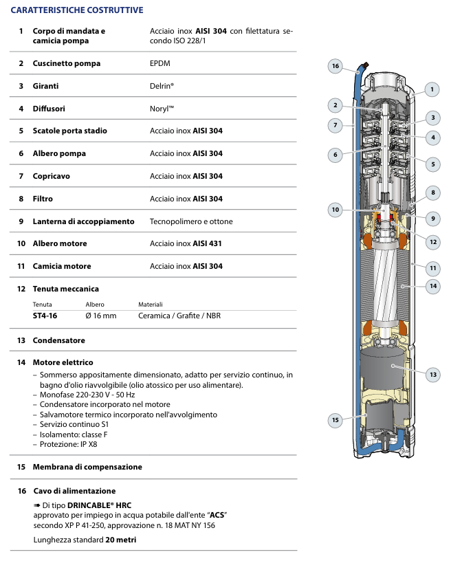 Profondità d'impiego fino a 100 m sotto il livello dell'acqua (con cavo di alimentazione di lunghezza adeguata)