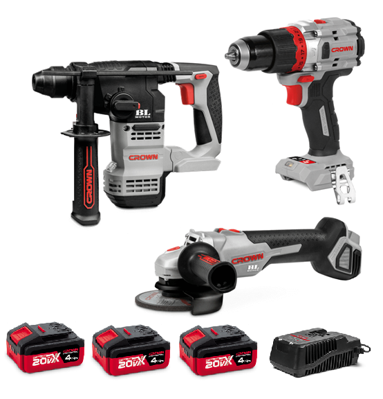 TRAPANO CON PERCUSSIONE A BATTERIA CT21127HMX-4 BMC- Nm 100- Velocità a vuoto 0-500 / 0-2100 min-¹- Percussioni 0-32000 min-¹- Mandrino in metallo 1,5-13 mm- BrushlessTASSELLATORE SDS PLUS A BATTERIA CT28001HX-4 BMC- Joule 2,3- Velocità a vuoto 0-1400 min-¹- Percussioni al minuto 0-4500 min-¹- Foratura nel calcestruzzo 18 mm- 3 modalità- BrushlessSMERIGLIATRICE ANGOLARE A BATTERIA CT23001-125HX-4 BMC- Velocità nominale 8000 min-¹- ø max disco da taglio 125 mm- Filetto dell'alberino M14- Soft Start- Restart Protection- Brushless