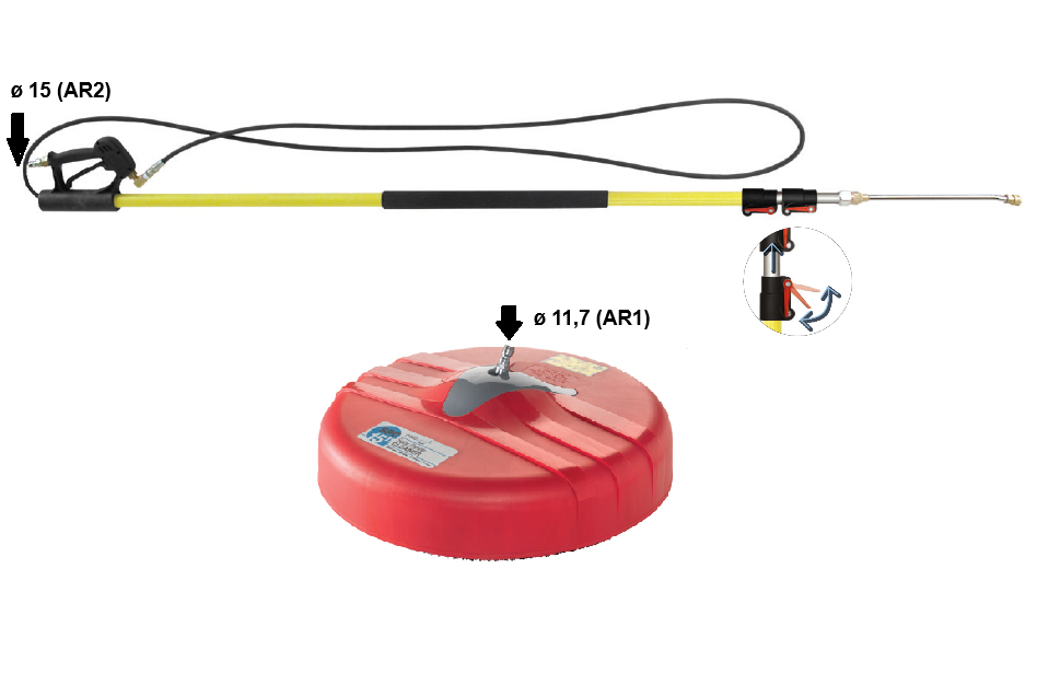 DATI TECNICI LANCIA TELESCOPICA - Attacco pistola AR2 diametro 15 mm - Attacchi rapidi per ugelli con innesto rapido diametro 11,7 mm (AR1) DATI TECNICI LAVA PANNELLI SOLARI - Pressione nominale 200 bar - Pressione ammissibile 220 bar - Portata nominale 11,4 l/min - Temperatura nominale 60° C - Attacco diametro 11,7 mm