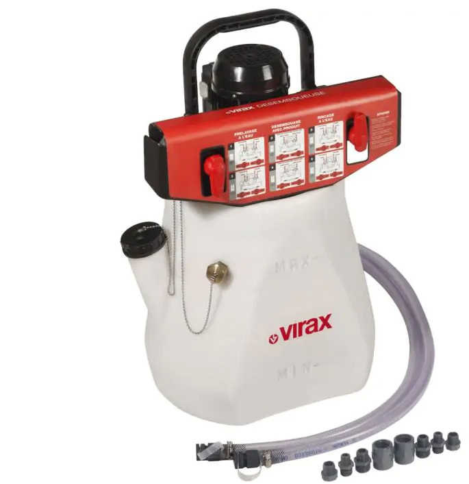 3 funzioni in 1: - Defangazione di radiatori e dei sistemi di riscaldamento a pavimento. - Eliminazione delle alghe (fonte di ostruzioni) nei sistemi di riscaldamento a pavimento. - Disincrostazione dei sistemi di riscaldamento e delle caldaie (esclusivamente in rame e acciaio). DESCRIZIONESerbatoio in plastica antiurto traslucida per visualizzare il livello del liquido. Invertitore di flusso manuale (elettrico) per aggredire i depositi in entrambi i sensi : azione più rapida ed efficace. Motore protetto IP54 per il massimo rendimento nel tempo. Impugnatura robusta e pratica per il trasporto. Temperatura max di utilizzo: 50°C. L’aggiunta di additivi Virax è indispensabile per ottimizzare l’azione della pompa per defangare. Tali additivi sono specifici in funzione della pulizia da effettuare. Obiettivo degli additivi: ristabilire una circolazione corretta nell’impianto per una migliore efficacia.DATI TECNICI- Portata della pompa 30 l/min- Potenza del motore 0,33 kw- Capacità vaschetta 24 litri- Altezza di elevazione 15 m- Peso 12 kgIN DOTAZIONE2 tubi trasparenti da 2 m e 1 set da 8 raccordi inclusi per adattarsi a tutte le configurazioni.
