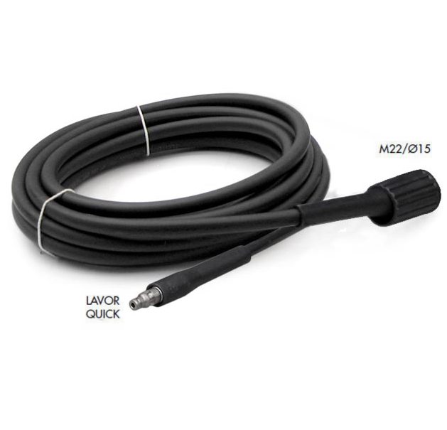 DESCRIZIONE- Tubo con manichette in plastica ø 1/4"- Lunghezza: 8 metri- Pressione max: 160 bar- Temperatura massima: 60°C- Ingresso: M22 F / ø 15- Uscita: Innesto rapido