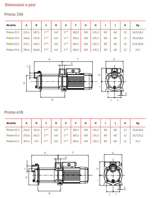 APPLICAZIONIPer acque pulite in applicazioni domestiche, irrigazione e pressurizzazione. MOTOREAsincrono, due poli. Isolamento classe F. Protezione IP X5. Servizio continuo. Versione monofase con protettore termico incorporato.MATERIALICorpo pompa e giranti in acciaio inossidabile AISI 304. Aspirazione e mandata in ghisa. Diffusori in Noryl caricato in fibra di vetro. Asse motore in acciaio inossidabile AISI 420. Tenuta meccanica in grafite e steatite. Limiti di utilizzo Temperatura massima del liquido: 40 °C