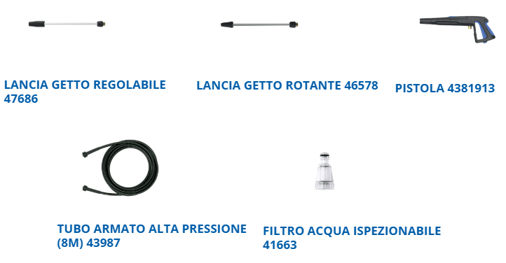 Completano la macchina il pratico porta accessori e l’avvolgitubo, progettato per sistemare facilmente il tubo armato ad alta pressione, della lunghezza di 8 metri.