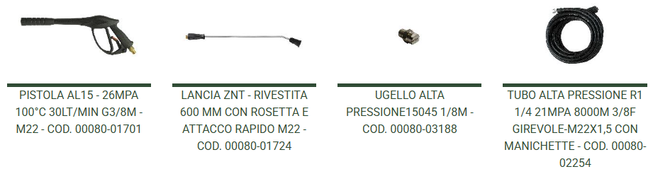 CARATTERISTICHE- Motore elettrico a 4 poli (1450 RPM) con protezione termica- Pompa lineare con testata in ottone a tre pistoni in acciaio ceramicato e valvola by-pass incorporata- Valvole di aspirazione e mandata in acciaio inox- Serbatorio detergente integrato 7,5 litri per aspirazione indiretta- Regolatore di pressione- Porta accessori- Supporto tubo ad alta pressione- Maniglia ergonomica- Manometro in bagno di glicerinaDATI TECNICI- Pressione d'esercizio: 130/150 bar- Portata: 660 l/h- Potenza assorbita / tensione: 2900 Watt - 230 Volt ~ 50 Hz 1 ph- Tipo di motopompa/RPM: MP3/1450 RPM- Temperatura max entrata: 40°C- Dimensioni macchina: 59x37x87 cm- Peso: 28 KgIN DOTAZIONE