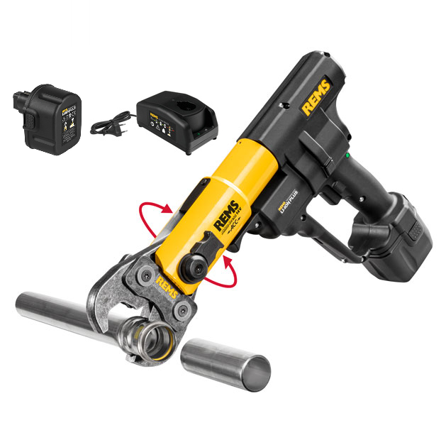 - Elettroutensile universale e maneggevole con ritorno automatico per la realizzazione di giunzioni a pressione di tutti i comuni sistemi pressfitting. Per l’azionamento a batteria o a corrente.