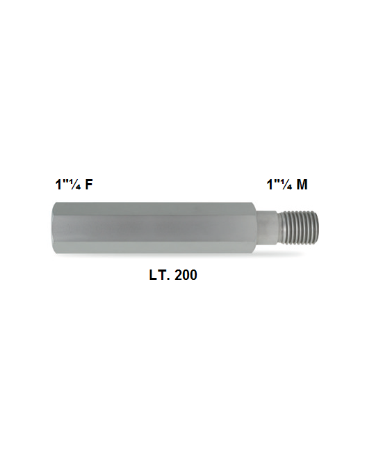 La prolunga per foretto diamantato WORKDIAMOND da 200 mm è progettata per offrire prestazioni superiori nelle operazioni di perforazione. Con un attacco maschio da 1'' 1/4 e un attacco femmina da 1'' 1/4, questa prolunga è compatibile con una vasta gamma di attrezzature da perforazione.