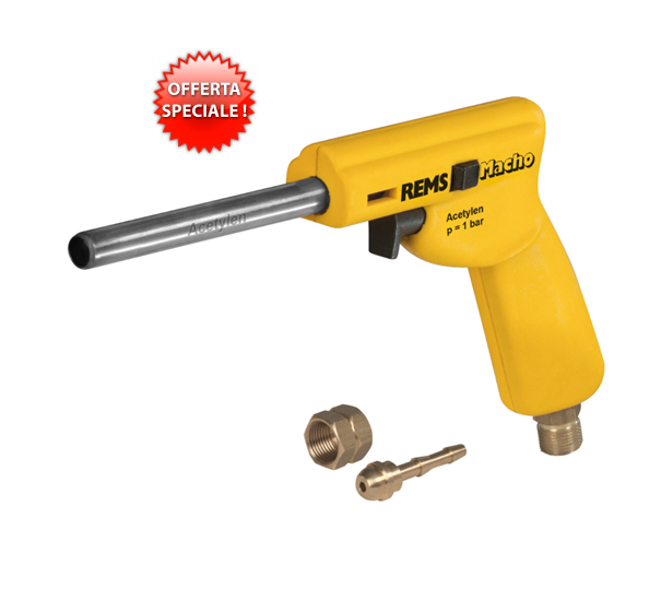 (ATTACCO DEL GAS G 3/8 LH - DADO E PORTAGOMMA G 3/8 LH - IN CONFEZIONE BLISTERATA)DESCRIZIONESaldatore a gas maneggevole con autoaccensione e fiamma turbo per brasatura forte e dolce velocissima. Consumo ridotto di gas. Tubi di rame ed altri ≤ Ø 64 mm Riscaldare, ricuocere, sverniciare, fondere, scongelare e procedimenti termici simili. Temperatura della fiamma 2500°CAutoaccensione piezoelettrica Senza accendino! Premendo il pulsante – la fiamma si accende! Lasciando il pulsante – la fiamma si spegne! Consumo ridotto di gas, solo 360 g/h! Soltanto acetilene Il bruciatore ad iniezione utilizza l’ossigeno dell’aria. Per questo è necessario soltanto l’acetilene. Costruzione Supermaneggevole, ergonomico, utilizzabile con una mano sola. Nessuna registrazione, nessuna regolazione. Tasto di bloccaggio per funzionamento in continuo. Un solo tubo bruciatore universale. Fiamma turbo Fiamma a dardo con effetto turbo rinforzato per un’altissima potenza riscaldante per effettuare in un lampo brasature forti.